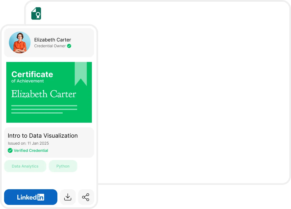 Recipients can add credentials to LinkedIn profiles with one click. You control the title, issuer, dates, and optional credential ID or URL.